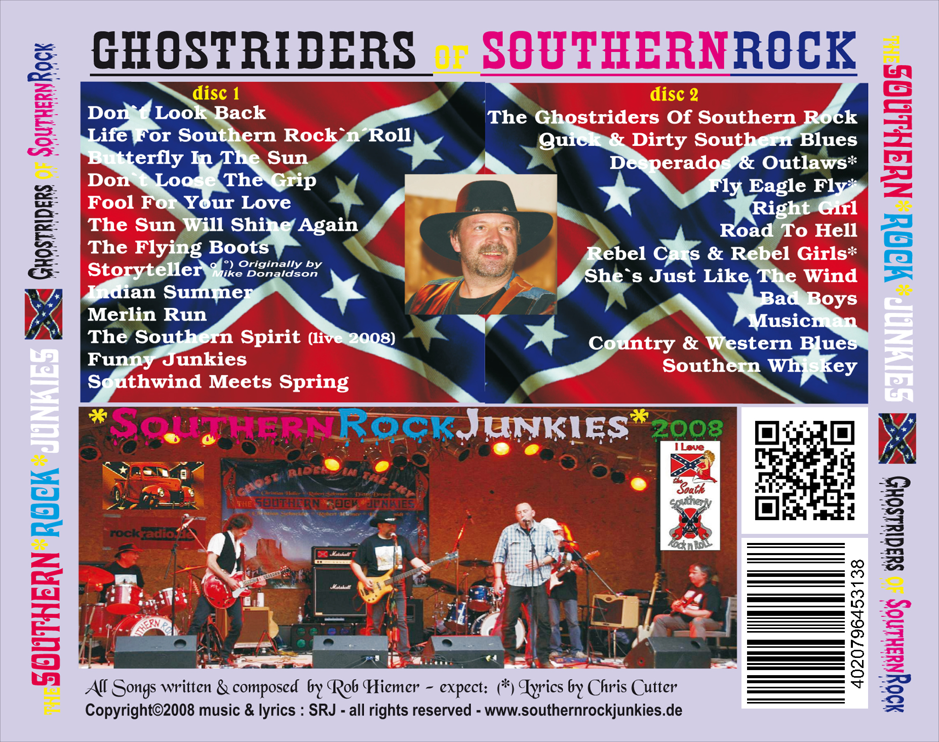 Das Doppel-CD-Album "Ghostriders of Southern Rock" ist das erste Album der SOUTHERN ROCK JUNKIES und wurde im Juli 2014 der Öffentlichkeit vorgestellt. Die CD 1 trägt den Titel "First" und umfasst 13 Titel, die CD 2 heißt "Ghostriders of Southern Rock" und hat 12 Songs, d.h., die SOUTHERN ROCK JUNKIES bieten ihren Fans mit diesen beiden CDs volle 25 (!) Songs, von denen die meisten Überlänge haben. Dieses Doppel-Album ist einfach ein Muss für jeden Southern Rock Fan!