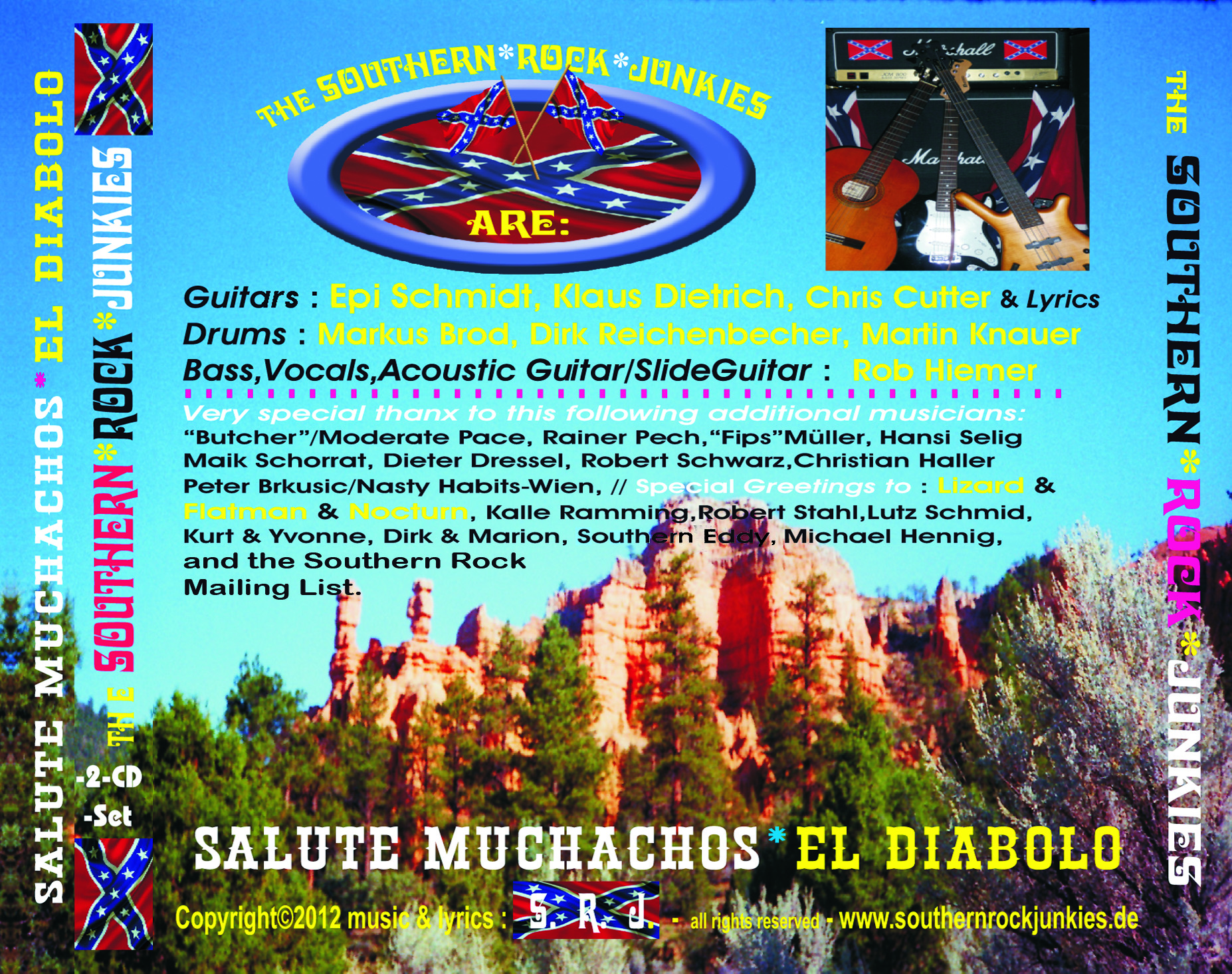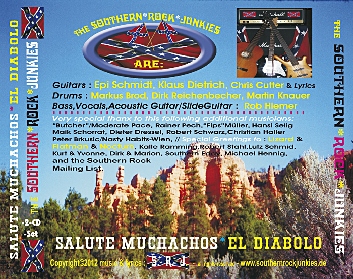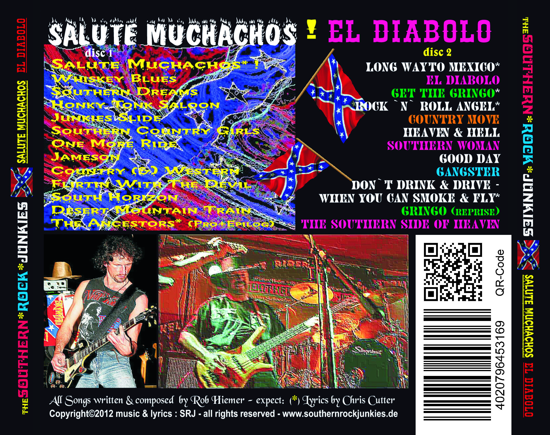 Das Doppel-CD-Album "Salute Muchachos / El Diabolo" ist das zweite Doppel-Album der SOUTHERN ROCK JUNKIES und wurde im Oktober 2014 der Öffentlichkeit vorgestellt. Die CD 1 trägt den Titel "Salute Muchachos" und umfasst 13 Titel, die CD 2 heißt "El Diabolo" und hat 12 Songs, d.h., die SOUTHERN ROCK JUNKIES bieten ihren Fans mit diesen beiden CDs volle 25(!) Songs, von denen die meisten Überlänge haben. Dieses Doppel-Album ist, wie das erste, einfach ein Muss für jeden Southern Rock Fan!