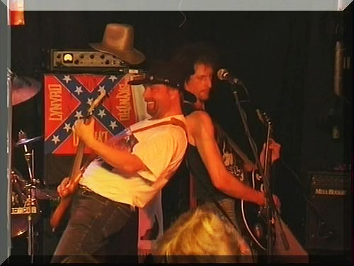 Klar in den Vordergrund spielte sich dabei für mich Gitarrist und Sänger Dieter Dressel, der den typisch singenden Southern Rock-Sound auf seinen Klampfen wunderbar recycelte. Kongenial unterstützt wurde er vom zweiten Gitarrero Eberhard 'Epi Keith Townshend' Schmidt, der wahlweise das berühmte Flügelrad auspackte, oder ultralässige wie harte 'Palmenriffs' vom Stapel ließ, weniger mit dem singenden Ton, sondern eher mit hardrockig zerrendem/aufjaulendem Sound ausgestattet.
