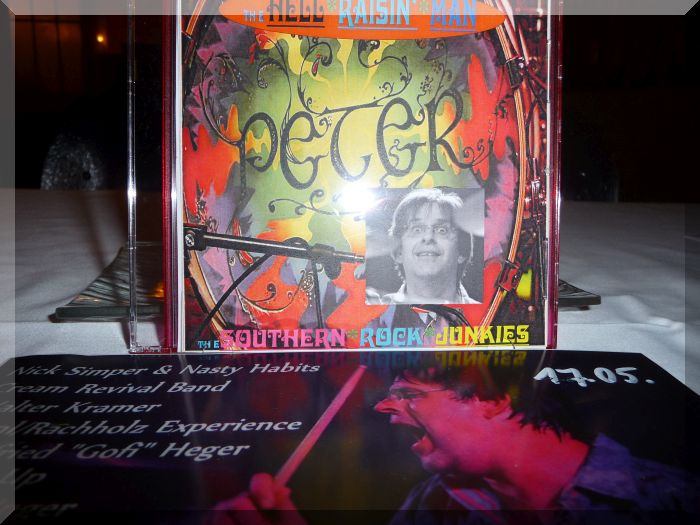 (PETER BRKUSIC – der Ausnahme Drummer aus Wien von der "CreamRevivalBand" und seiner Band "Nasty Habits" mit dem ersten Deep Purple Bassisten Nick Simper spielte bereits bei 3 Songs der SRJ die Drums.)
