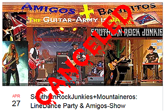 Leider gab es auch eine betrübliche Begebenheit: Die geplante Southern Rock Junkies „Amigos-Live-Show“, zusammen mit den Mountaineros, welche für den 27.04.2019 auf der Green Valley Ranch angesetzt war musste aus gesundheitlichen und logistischen Gründen gecancelt werden.